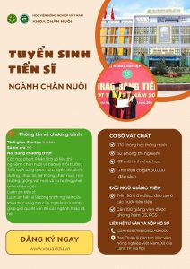 Chương trình đào tạo Tiến sĩ ngành Chăn nuôi được xây dựng với mục tiêu đào tạo những nhà khoa học có trình độ cao về lý thuyết và năng lực thực hành phù hợp, có khả năng nghiên cứu độc lập, sáng tạo, có khả năng phát hiện và giải quyết được những vấn......